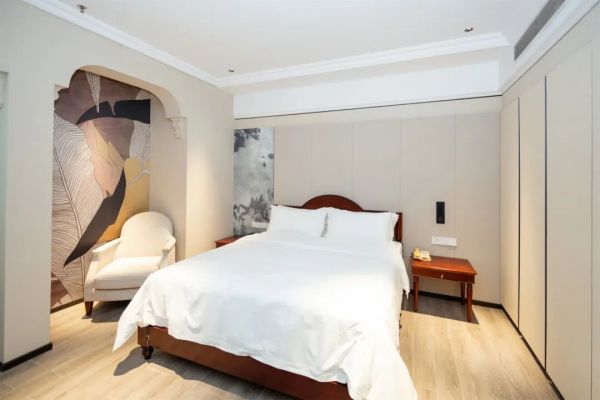 客房内,墙板以丰富的饰面选择,完美复刻天然材质的纹理和质感,为客房营造出温馨雅致的不同风格,更创造了宁静舒适的休憩环境。