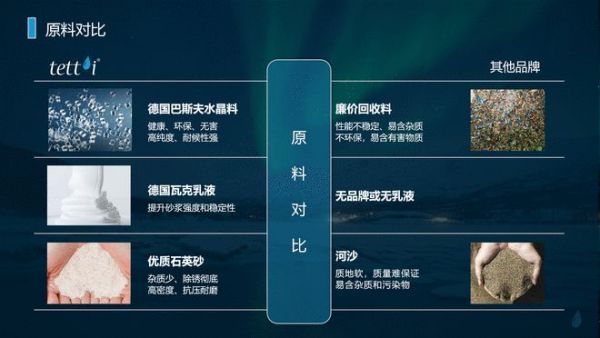 *原料选用德国巴斯夫全新水晶料、德国瓦克乳液及优质石英砂