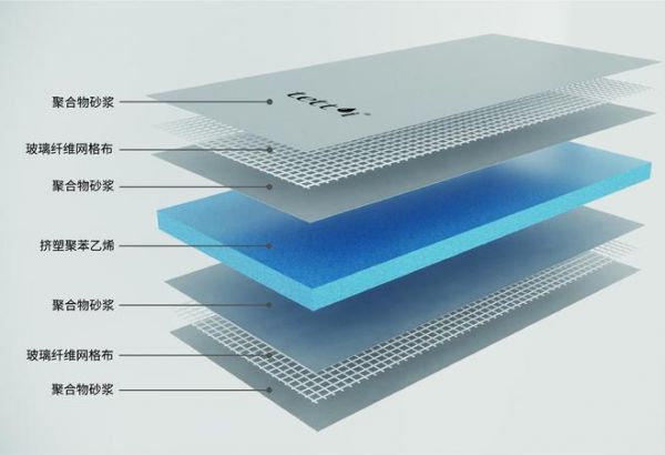 防水背衬板芯材是由XPS(挤塑聚苯乙烯)制成,它具有封闭的发泡结构,闭孔率达到99%以上,具有防水、防霉、保温、轻质、高强度和抗压等特点,两侧覆盖抗拉玻纤网格布和高分子聚合物砂浆,可以提供额外的强度和柔韧性,同时也确保了良好的粘接性,使得表面可以粉刷涂料或者贴瓷砖/岩板。