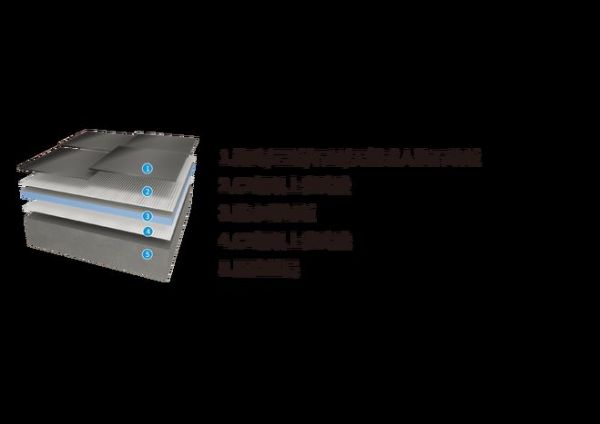 tetti台迪防水背衬板严格采用100%全新环保材料,包括德国巴斯夫水晶料(高纯度、耐候性强)、德国瓦克乳液(提升砂浆强度、稳定性)及精选优质石英砂(高密度、抗压耐磨),从源头确保产品强度、耐久性与稳定性。