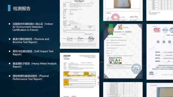 通过挪威SINTEF认证、瑞典SundaHus认证以及中国建材检验认证集团(CTC)的全面检测,也通过法国室内环境检测A+级认证、氟溴元素测试报告、柔性冲击抗性报告、重金属报告、等,确保产品的质量和性能达到国际和国内的高标准。