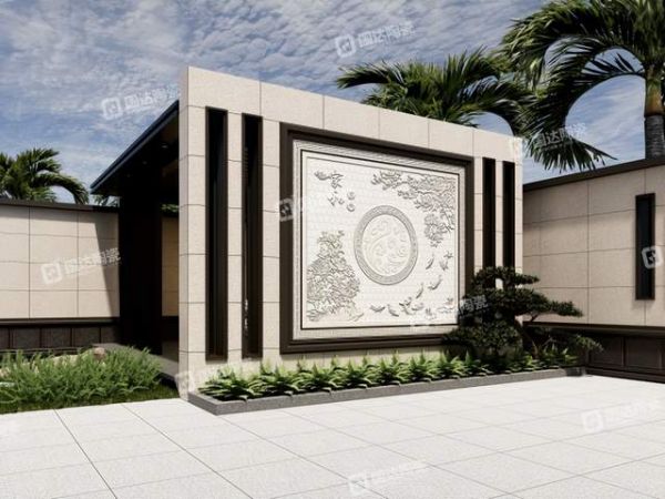 将此壁画应用在别墅外墙上,寓意主人家家庭美满、福星高照、富贵绵长,世代荣华。