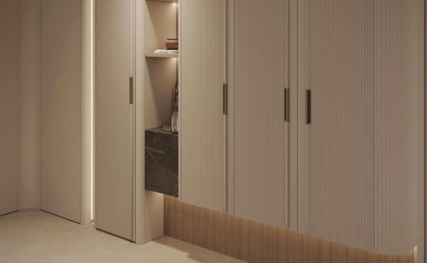 「静谧时光」在门型设计上极致考究。一体免拉手门型通过内嵌式设计,让柜面轮廓简洁利落,赋予空间静谧而有序的线条美感。探戈拉手门型搭配格栅结构,则在立面上创造出轻盈的韵律感。这些设计在弱化拉手存在感的同时,极大地提升了整体的设计辨识度,让简约不简单,细节之处尽显优雅品味。