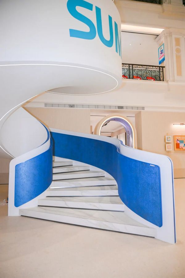 而在打造展厅内旋转楼梯的弧形结构时,更是以软瓷产品的柔软性能与金属涂料的质感充分结合,形成优雅深邃的复古效果,这是设计巧思叠加材料的可塑性而碰撞出来的火花。因此成为除弧形门洞之外的又一大打卡亮点。