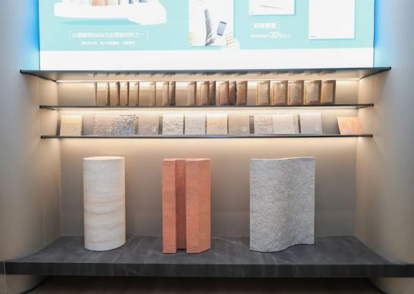 今年10月份,萨米特焕新亮相的5000㎡佛山总部展厅,全面展示了在瓷砖与岩板领域的优势产品。李总透露,展厅从设计、施工到最终交付仅耗时两个半月,关键之一在于全场景应用了新明珠绿材的30多种绿色新材料,极大提升了装修效率。