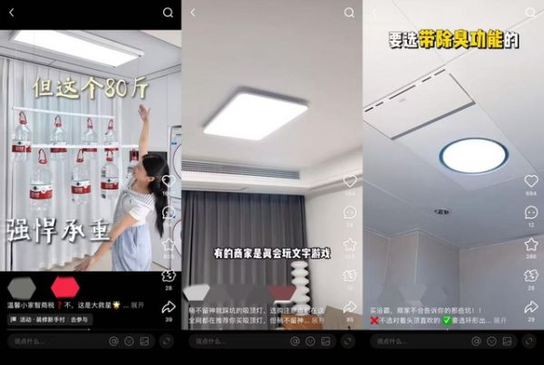 另一边,针对灯饰赛道的传统痛点,美的家居更是率先打破「硬装结束后再选灯具」的装修动线——以往业主往往在装修尾声才仓促挑选吸顶灯,常因尺寸不符、动线冲突或风格割裂留下遗憾。而美的家居选择从装修初期便介入需求场景,以「抬头就有好心情」主题企划跳出传统功能宣讲的窠臼,用「视线向上」的生活哲学重构空间价值,创新性地将浴霸、吸顶灯、超薄晾衣架三款产品串联,打造出「向上生长」的家装解决方案。