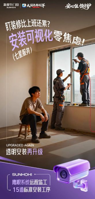 而今年七星服务3.0升级,将率先在业内引入VR量尺系统、智能鹰眼监控系统,通过数字化工具提升服务的精细度和透明度,业主可远程实时监控安装进度,双向语音功能便捷交流,提高安装质效。同时携手中国平安推出“安心做门窗”、“产品责任险”、“订购无忧险”三重保障,让产品质量、安装安全、交付售后每个环节都有相应的保险承保,构建起业内首个覆盖门窗产品全生命周期的保障网络,让消费者在享受便捷服务的同时,获得实实在在的服务保障。