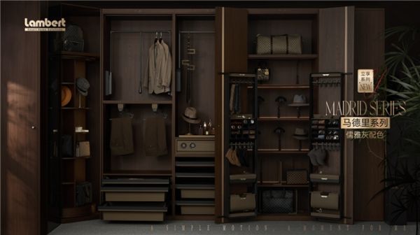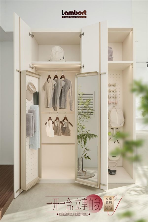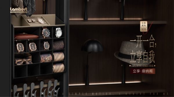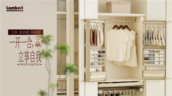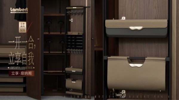相较于市场上仍依托滑轨、抽屉结构,需低头弯腰翻找的传统收纳产品,兰伯特立享系列新品实现了根本性突破——研发团队不仅走访行业展会汲取灵感,更跨界调研博物馆、艺术展的陈列逻辑,深度访谈客户研发总监、入户设计师与终端用户,从人类“站立”的本能舒适状态出发,打造出无需说明书、一看即懂的立式收纳系统。衣物、饰品等按日常使用状态立式呈现,真正实现“零弯腰自由”,让回家后的放松回归生活本源。