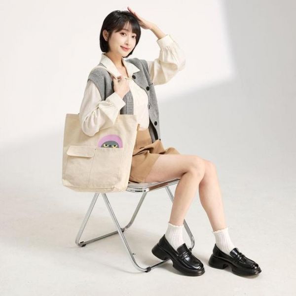 棉麻帆布质感,既环保又耐用,加固肩带分担重量压力。从家到办公室,这个包包完成了从私人空间到公共领域的过渡,Machiko的小怒脸却始终在对你说“有我陪你”。