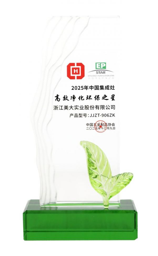 浙江美大再添殊荣!M906ZK集成灶荣获2025年“高效净化环保之星”称号