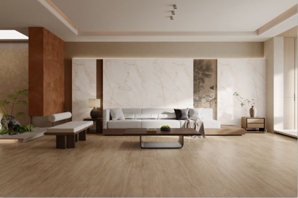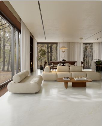 今年推出的宋境系列,是品牌对理想空间的又一次美好诠释。该系列从宋代美学中汲取灵感,以"淡、柔、和、简、雅"为设计基调,并运用冰晶干粒、闪光精雕、高透釉等精湛工艺,将淡雅色彩与细腻肌理凝固于砖面。