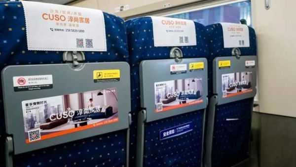 高铁作为连接“出发”与“归家”的重要载体,天然承载着人们对温暖生活的向往,这与淳尚家居“淳尚家,温暖爱”的品牌理念形成天然共鸣。此次淳尚家居冠名的品牌专列,通过七大高铁列车媒体构建起沉浸式传播空间:外车身彩贴、头枕巾、小桌板、海报、行李架彩贴形成视觉包围,LED滚动屏与语音播报实现动态触达,让高铁车厢成为淳尚家居“流动的品牌展厅”。