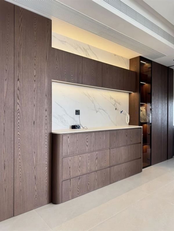 装修选板材,安全永远是首要考量,尤其对于有老人、小孩、孕妇的母婴家庭,甲醛等化学污染更是避之不及。凯鸿腾成沉香木香板从源头守住安全底线,精选原生木材凝练100%原木精华,拒绝任何化学添加,严苛契合ENF级安全标准。触摸板材时,萦绕的是天然木香而非刺鼻异味,不管用于打造衣柜、橱柜还是背景墙,都能从源头杜绝居家污染,构筑纯粹安心的呼吸领地。