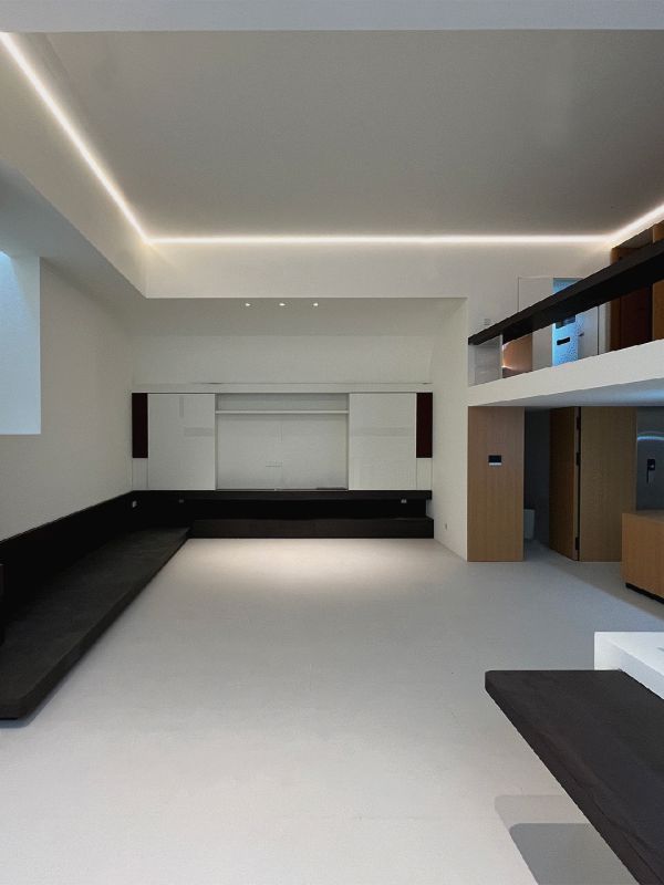 ▲客厅地面:魔术师岩板-极地白 / 地台地面:一品白