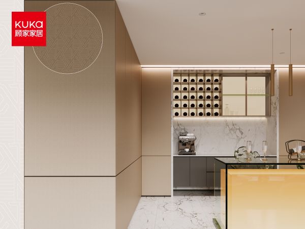 顾家家居整家定制将标志性的品牌“K”符号融入饰面设计,使产品成为“品牌故事的载体”,这不仅承载材料美学价值,更通过创新技术与结构优化,让用户在日常使用中建立与品牌的情感连接,为用户提供一种全新的视觉和触觉体验。