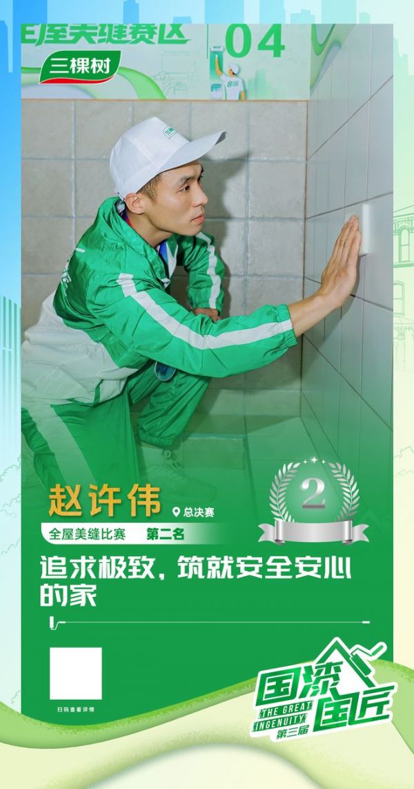 2025三棵树“国漆国匠”大赛总决赛全屋美缝亚军赵许伟:追求极致,筑就安全安心的家