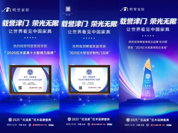 东阳市明堂红木家俱有限公司(下称“明堂家居”)蝉联“2025红木家具十大影响力品牌”与“2025红木整装定制热门品牌”两项重磅荣誉,总经理张向荣亦荣膺“2025红木家具领军企业家”称号。这不仅是一系列荣誉的叠加,更是对其以智造为翼、以文化为根、以远见领航行业的全面肯定。