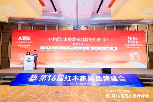 12月25日,第16届红木家具品牌峰会(以下简称“红木品牌峰会”)于上合峰会举办地——天津盛大启幕。作为红木行业年度高规格盛会,本届峰会以“AI驱动,共筑品牌新生态”为核心主题,汇聚产业顶层智慧与前沿力量,不仅由全联红木整装家具专业委员会重磅主办,网易新闻家居家具、品牌红木联合承办,更获得了全联民间文物艺术品商会、中国木材与木制品流通协会等四大国家级行业协会的鼎力支持,成为定义行业发展方向、凝聚产业共识的权威平台。