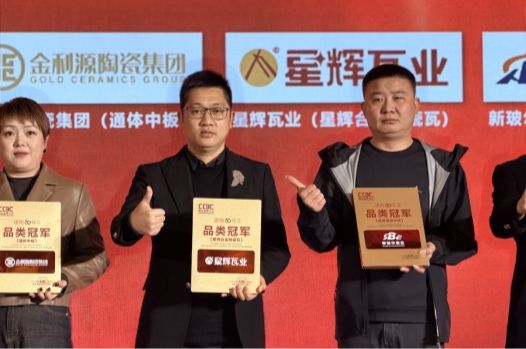 在本届大会暨《陶瓷信息》三十周年盛典这一历史性节点,为致敬三十载建陶伟业中涌现的杰出产区、企业、品牌及创新力量,大会隆重颁发“建陶30年”系列奖项。作为合金陶瓷瓦领域的长期深耕者与行业标杆,星辉瓦业凭借在该垂直领域的持续引领与卓越贡献,荣膺 “建陶30年 · 品类冠军(星辉合金陶瓷瓦品类)” 这一重磅奖项。这份荣誉,不仅是对星辉瓦业长期专注发展与品质坚守的肯定,亦是对品牌、产品与渠道综合实力的行业认可。
