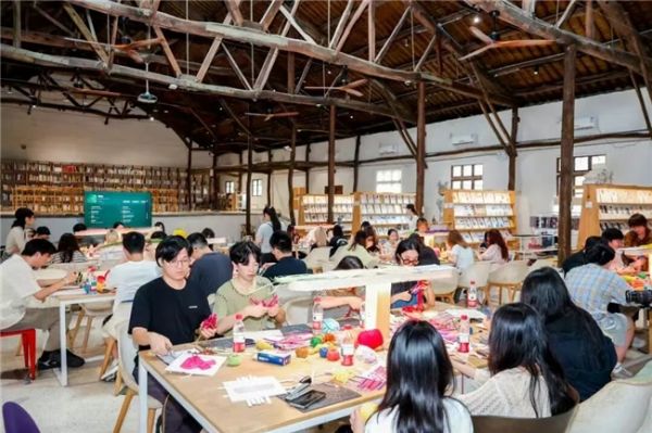 立邦校园活动:在杭州青山村融设计图书馆,学生们在知名设计师张雷的带领下,走进材料实验室