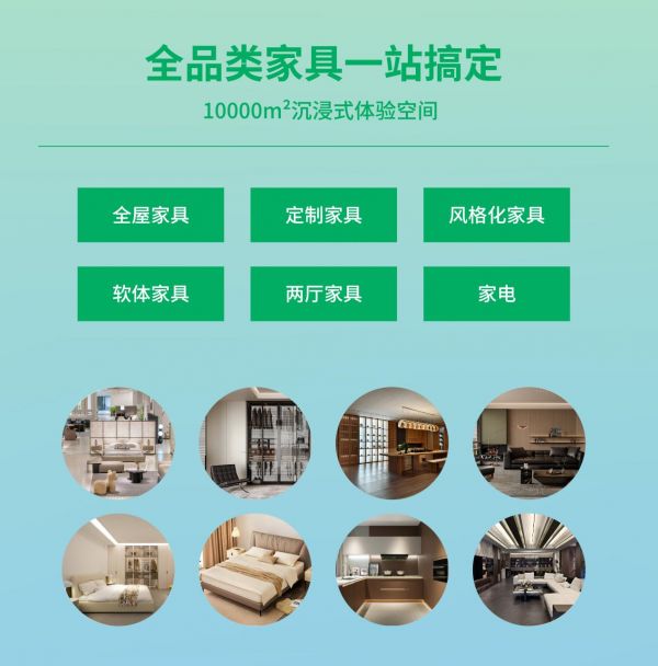 展销中心拥有10000m²沉浸式体验空间,融合了超过40家经过天府美好家认证的源头家居工厂。