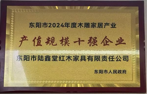 喜迎红红木获评东阳市木雕家居产业产值规模十强企业,硬核跻身产业领军阵列