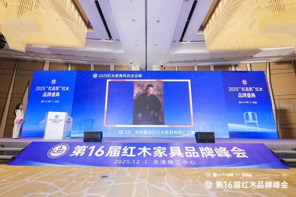 喜迎红红木荣获“2025红木家具十大受欢迎品牌”、“2025绒毛黄檀家具热门品牌”,董事长陆飞跃荣获“红木家具风云企业家”称号