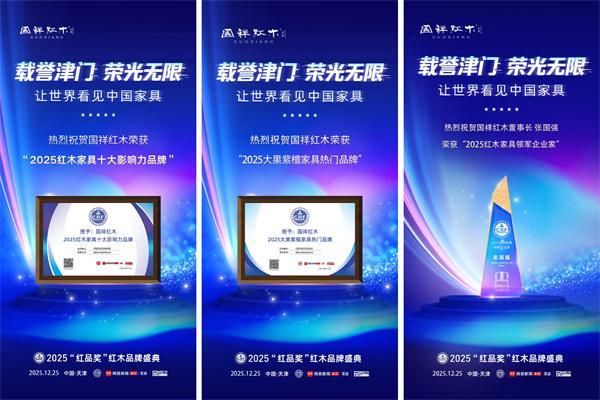 2025年,恰逢国祥红木成立三十周年之际,企业以“文化传承与产业革新双轮驱动”的姿态,一举斩获“红木家具十大影响力品牌”“大果紫檀家具热门品牌”两项重量级称号,印证了其作为行业标杆的雄厚实力。