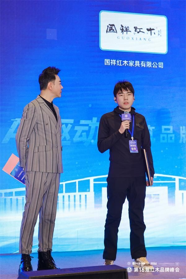 国祥红木荣获“2025红木家具十大影响力品牌”,总经理张宇杰上台领奖并接受央视主持人肖贵宁采访
