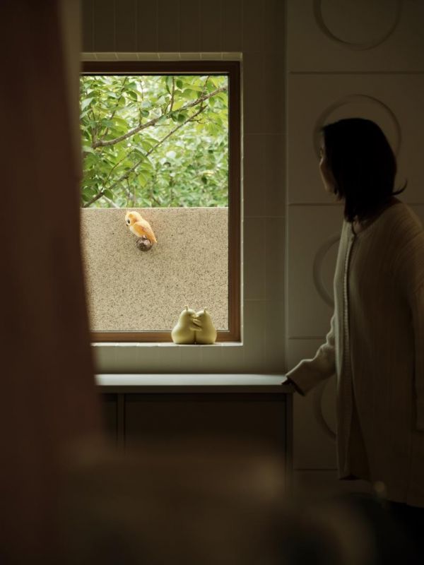 厨房突破传统封闭属性:扫拖机器人专属收纳位嵌入柜体,活动挡板实现“用时展开、闲时隐藏”;冰箱与橱柜严丝合缝,维持立面简洁。一扇可开启窗扇,不仅引入自然通风,更让烹饪者与庭院产生情感互动。餐厨不再是后勤区,而是生活剧场的中心舞台。
