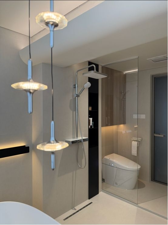 希望装个简单又高级的卫生间,干湿分离,不喜欢传统的封闭式淋浴房。另外主卫需要一个浴缸给孩子泡澡。