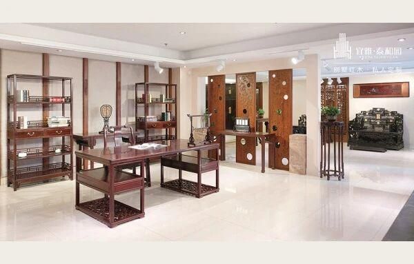 泰和园主打私人定制,以丝翎檀雕技法制小叶紫檀家具,《梅兰竹菊》系列兼具艺术与生命力,是红木家具领军企业中的特色代表。