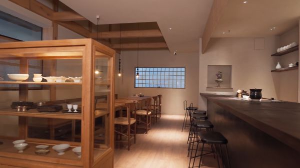 作为一个多元美学现场,其动人之处更在于可随需求自由变化的灵活特质。一层的开放式布局将“灵活”书写得直观而从容,“松弛”从不只有一种形态:安坐茶桌前,是“一人得幽”的静;吧台旁围坐三两知己,是“对饮成趣”的暖。空间拆分时,化为独立的茶席与休憩区;整合后,又成为可容纳小聚的通透场域。最妙在于那份“不刻意”:大漆吧台的纹理裹着人间烟火气,连光影都随时间悄然流动——上午清透明亮,午后暖意晕染。这里的美从不张扬,只待你慢下脚步,静静接住。
