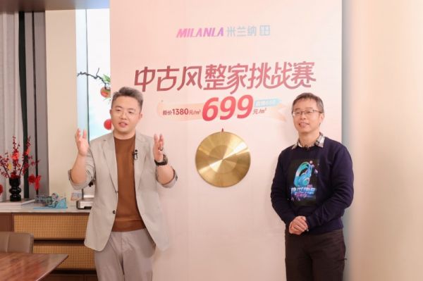 在全国直播的公开见证下,米兰纳“中古风整家挑战赛”以一场颇具象征意义的仪式正式擂响战鼓。幕布揭开,699元/平方米的全球统一首发价格重磅公布。随即,一声铿锵锣鸣响彻全场,象征挑战赛正式开局。