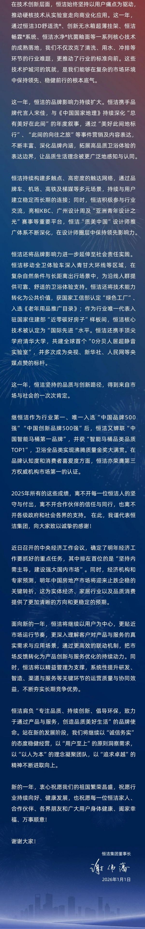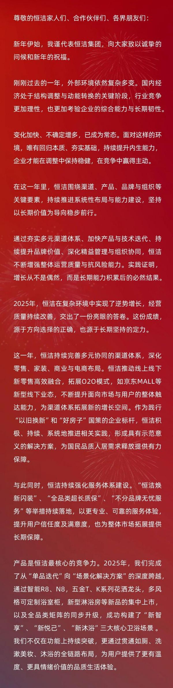 恒洁集团2025年新年贺词:激流奋进,共创美好