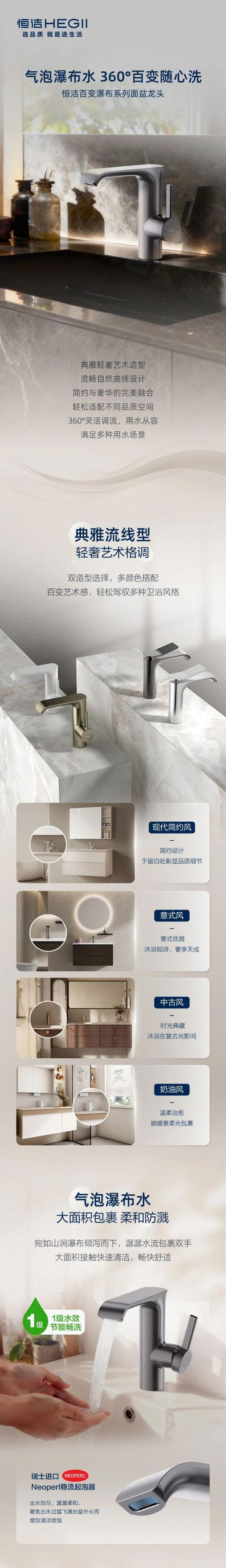 新品上市 恒洁百变瀑布系列面盆龙头,满足多种用水场景