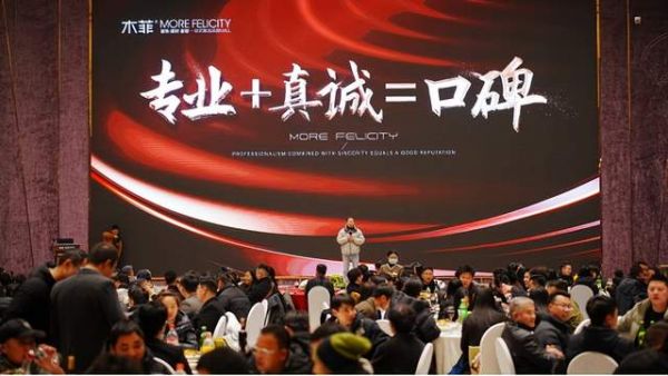 家宴特设“前线卓越”颁奖环节,现场精心布置的销售荣誉墙格外醒目,墙上镌刻着年度最佳销量、年度销量增长榜、年度单项突出、年度最佳执行力榜等荣誉称号及获奖者姓名,每一项荣誉都见证着木菲销售团队以专业服务链接万千家庭的付出。此次不仅对数十位员工和团队进行表彰,还为销售荣誉墙上的优秀个人与团队颁发了奖章与锦旗。记录下的不仅是荣誉时刻,更是木菲品质传承与市场认可的象征意义。