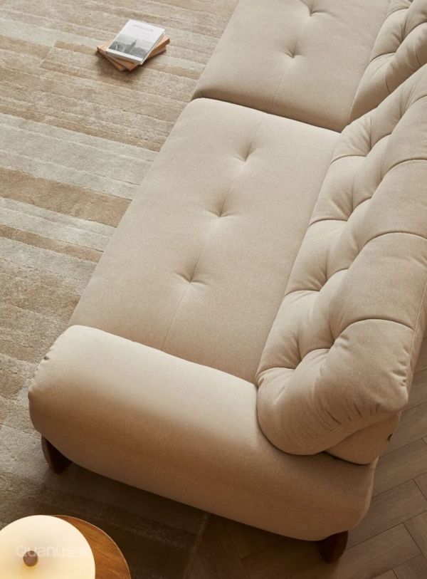 座深:指沙发座面的前后长度,通常在50-65cm之间。身高较矮者可选50-55cm的座深,起身与靠坐都更轻松;身高较高者则适合55-65cm,能为大腿提供充分承托。此外,座深超过65cm的慵懒款沙发,坐感更放松,可随意躺坐。
