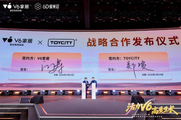 本次发布会上,V6家居与中国首家专注于“中国原创潮流 IP 孵化”的潮玩品牌公司TOYCITY 玩具城市达成战略合作签约。双方将启动深度IP合作,通过V6家居6D蜂巢芯系列床垫等核心产品与TOYCITY 旗下潮玩IP的创意联动,开启蜂暴玩家Laura的6D蜂巢秘境,以潮流文化消费链接青年消费群,在跨界营销中持续提升品牌影响力、认同感。