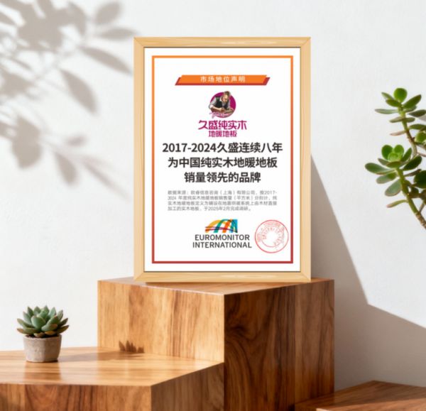 喜报!久盛纯实木地暖地板荣获「2025年度家居消费者信赖销量领先品牌」称号