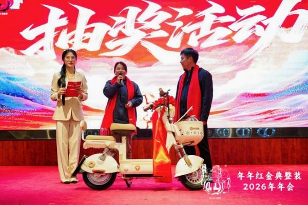 随着奖项的逐一揭晓,现场欢呼与掌声此起彼伏。而当在晚会最终环节,年年红金典整装总经理马国华从抽奖箱中抽出特等奖——电动车大奖的得主姓名时,全场气氛瞬间被引爆。获奖员工激动不已,这份开年巨奖不仅是一份幸运,更寓意着在新的一年里“马力全开”,前程似锦。抽奖环节不仅送出了丰厚礼物,更将关爱、惊喜与欢乐深深融入每位员工的体验之中。