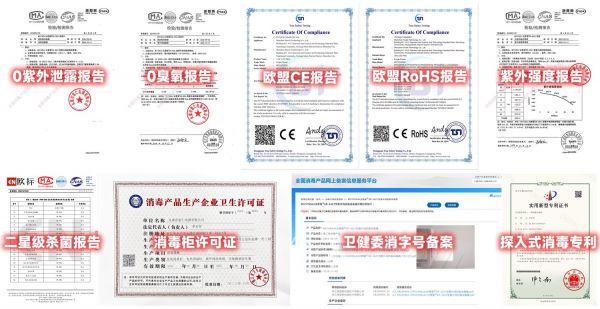 部分产品夸大宣传“99.99%杀菌率”或“母婴级”,却无法提供国家卫健委“消字号”备案、权威机构的“二星级”或“超二星级”杀菌报告,以及0紫外/0臭氧泄漏报告等关键安全认证。缺乏这些硬性资质背书,其实际消毒效果和安全性无从保障。