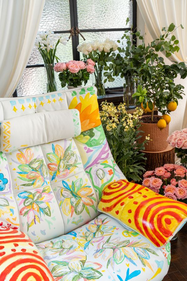 光线倾洒在将雕塑般明朗线条和广袤海岸盛绽花卉的有机形态糅合勾勒出如向阳攀升般流动线条的Fiore扶手椅律动粲然新生的动人之韵。