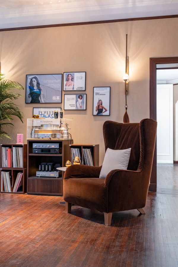 循阶而上,倚入建筑二层,转角处的Marlene扶手椅,复古棕绒紧密贴合收拢的曲线背靠,稳固承托体态,并包裹呼吸,形成暂缓思绪,放松身心的能量磁场。