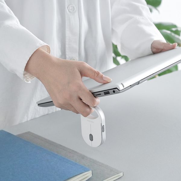 小巧扁薄的机身,不到30g的重量,放进随身包的夹层里几乎不占空间,彻底告别传统鼠标的笨重感。独特的镂空设计,让空气在掌心自由流动,也方便挂在手指上携带移动。它懂得出差打工人在高效运转的规则里,所关注的诸多痛点。