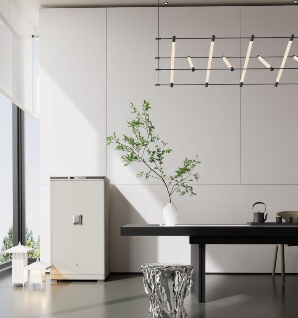 在技术创新之外,艾谱尊御系列的另一大突破,在于将“宋韵文化”深度融入产品设计,让冰冷的安防设备成为传递文化内涵、承载家庭情感的载体。尊御系列的文化表达并非简单的“元素堆砌”,而是从“材质、色彩、寓意”三个维度实现与宋韵美学的深度融合。材质上,产品顶盖选用与紫砂壶同源色系的紫褐色纳帕皮,这种经过12道鞣制工艺处理的皮革,触感温润如玉,既延续了宋代文人“尚雅”的审美追求,又以“紫气聚顶”的设计暗含“招财纳福”的东方祥瑞;色彩上,外壳采用“凝辉金”烤漆,通过调配金属粉末与哑光剂比例,呈现出宋代宫廷器物特有的“鎏金不浮夸、哑光不沉闷”质感,与现代高端家居常见的米白、浅灰、原木色等色调轻松适配,避免了传统保险箱“色彩突兀”的问题。