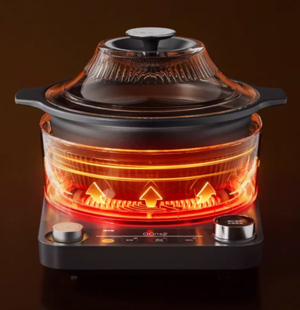 锅具材质直接影响菜品风味与健康。东菱中式料理锅标配2L手作陶瓷汽锅与3.7L古法砂锅。陶瓷汽锅经1250℃高温烧炼,锅身圆润受热均匀,锁住食材本味;古法砂锅采用进口天然锂辉石,0涂层设计杜绝高温烹饪下的杂质析出,保持食材本真原味,传热均匀蓄热持久,更易释放食材营养鲜味,明火也能适用。