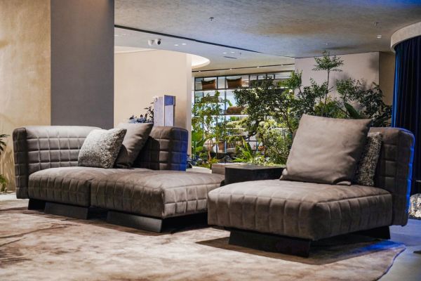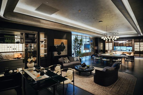 店内产品展示的逻辑,也从根本上跳出了传统家居展厅的定式。一层是博洛尼展示其旗舰产品的核心区域,由享誉国际的建筑及室内设计大师梁志天亲自操刀设计的79系高端产品,在此占据了近两千平方米的空间,以极具感染力的完整场景,诠释着博洛尼对奢华家居质感的理解。