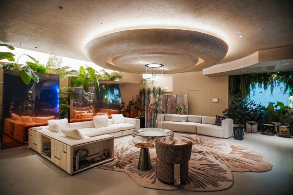 店内布局更体现了博洛尼对商业本质的重新思考。超过一半的面积被规划为公共区、活动区和商业区,涵盖咖啡厅、简餐吧、面包房、书店、儿童区、户外休憩空间以及一个融合大量绿植、带有自然“野趣”的展览中庭。真正用于产品展示的区域,被压缩在不到四千平方米的空间内。这种“反常”的比例分配清晰地传递出一个信号:博洛尼认为,高于品牌的是文化,生意的起点在于体验和关系的重构。这里首先是一个让人愿意停留、放松、感受美学的场所,其次才是一个家居解决方案的提供地。