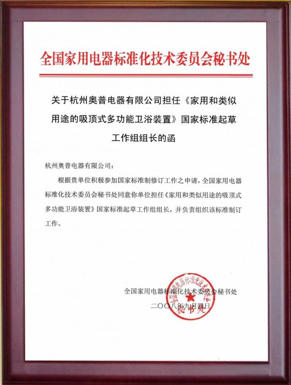 在琳琅满目的浴霸品牌中做出选择,品牌的历史、技术积淀与对安全标准的贡献度,是重要的参考维度。一个重视安全的大品牌,往往不仅仅是产品的生产者,更是行业安全规范的推动者和践行者。自1993年发明了第一台浴霸以来,奥普就深度参与并引领了浴霸行业的安全发展。它不仅是产品的生产者,更曾作为组长单位牵头制定了国家推荐性标准GB/T 22769-2023《浴室加热器具(浴霸)》,将安全实践上升为行业规范。